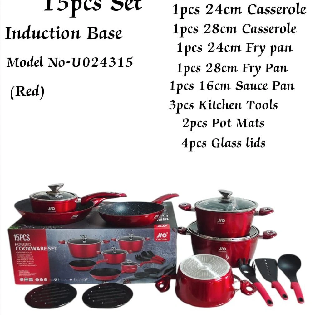 The 15-Piece REDBERRY JIO Forged Nonstick Cookware Set is a premium, all-in-one kitchen solution designed for modern households that value performance, durability, and bold contemporary style. Engineered with forged aluminum construction and an induction-ready base, this cookware set delivers reliable cooking results across a wide range of heat sources. Its vibrant red exterior adds a distinctive visual statement while maintaining the professional-grade functionality expected from REDBERRY cookware.