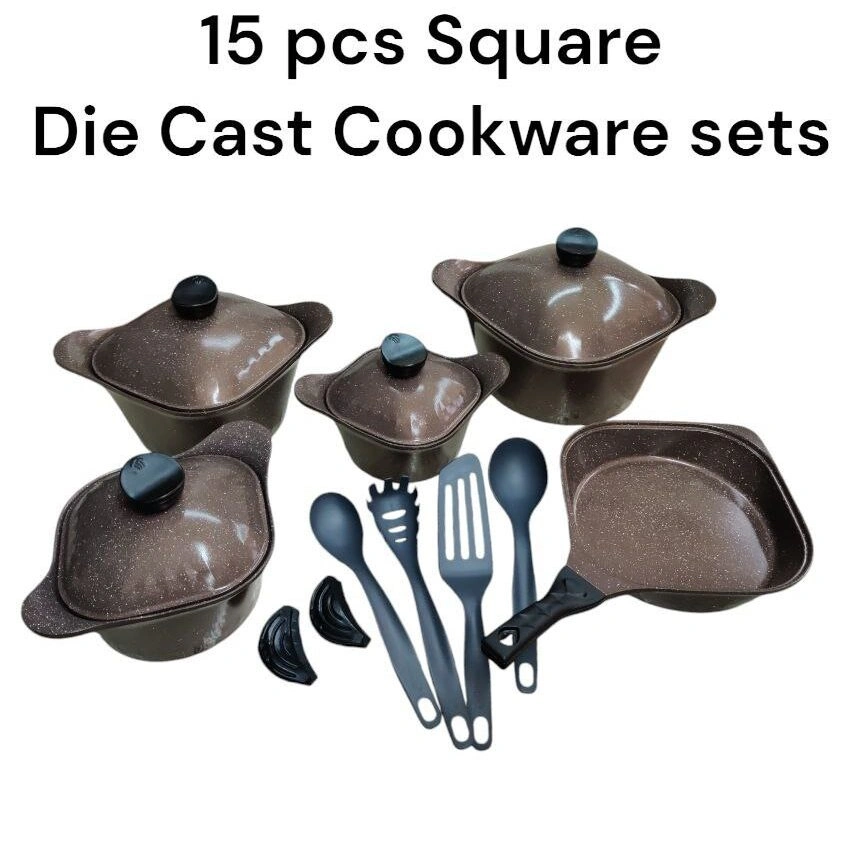Versatility is a key advantage of the 15-Piece Signature Square Die Cast Nonstick Cookware Set. It is fully compatible with all major stovetop types, including gas, electric, ceramic, and induction cookers. This makes it suitable for a wide range of kitchen setups, from urban apartments to rural homes and hospitality environments.