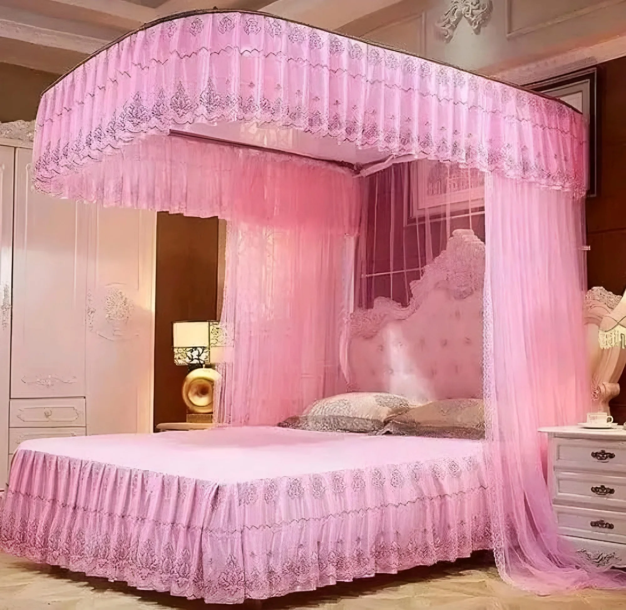 The 2 Stand Rail Mosquito Net Elegant Bed Canopy With Full Protection Sizes 4×6 5×6 6×6 White Cream Pink Purple. is available in elegant color options to complement various bedroom styles. White offers a clean and timeless look, cream adds warmth and softness, pink creates a gentle and romantic atmosphere, while purple introduces a bold and luxurious accent. These color choices allow users to personalize their sleeping space while enjoying full mosquito protection.