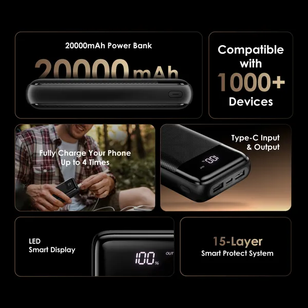 • 20000mAh Battery Capacity