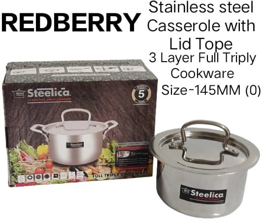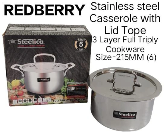 1 × 3L REDBERRY Steelica 3 Triply Stainless Steel Casserole