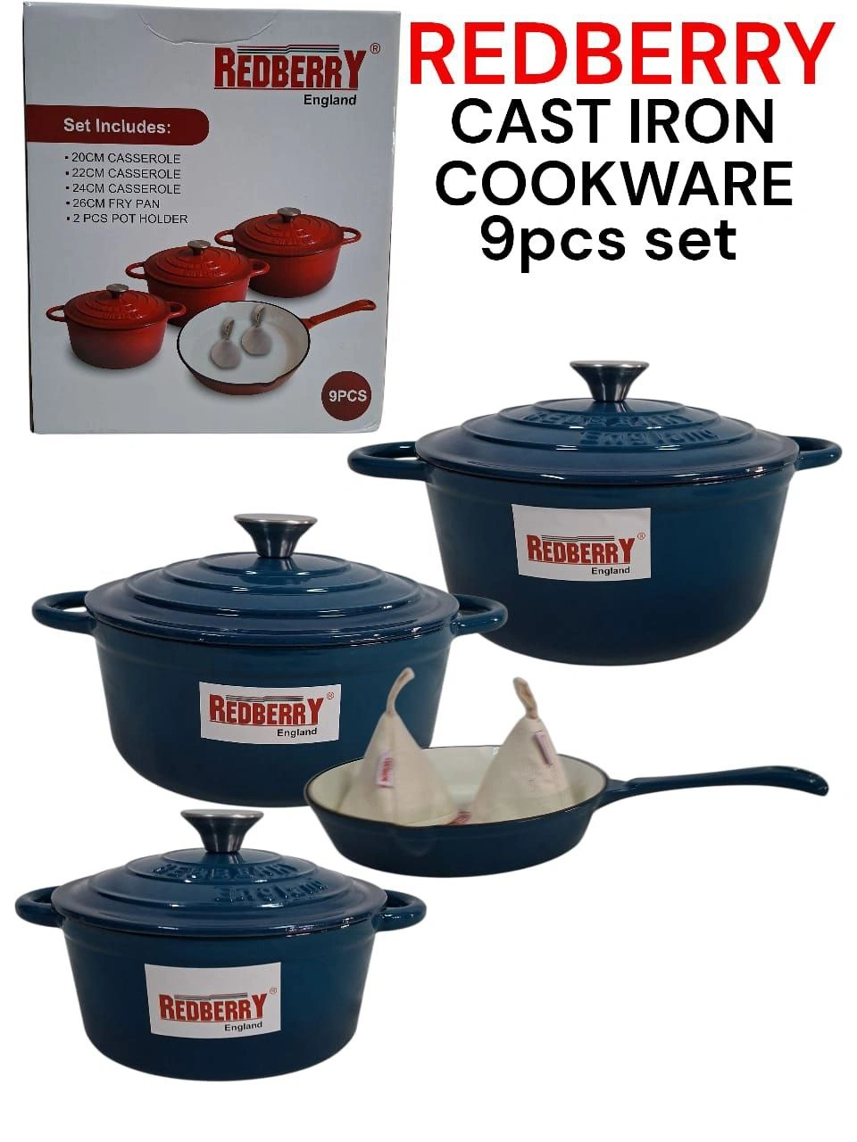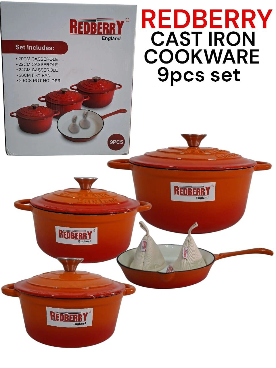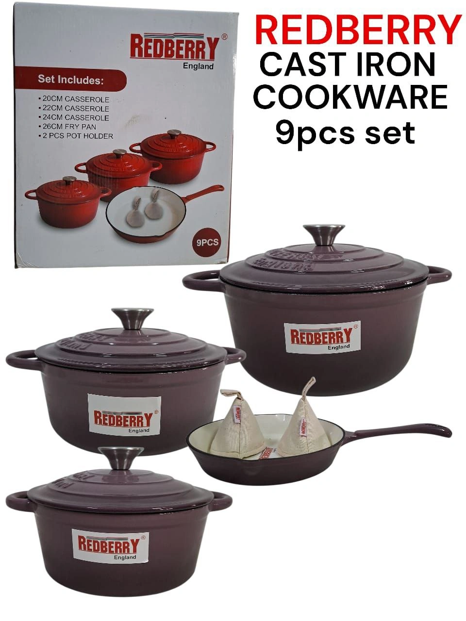 The 9-Piece REDBERRY Enamel Coated Cast Iron Cookware Set | Smart Enterprise includes: