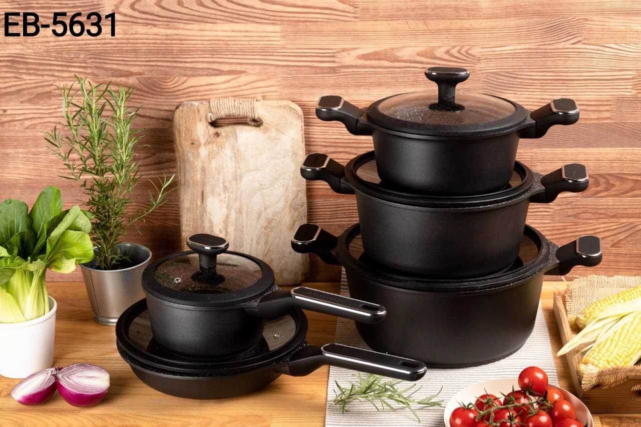 A well-equipped kitchen begins with versatile cookware. The 10 Piece Edenberg EB 5631 Silicone Aluminum Cookware Set | Smart Enterprise includes multiple cooking pots and pans designed to support various cooking styles and meal types.