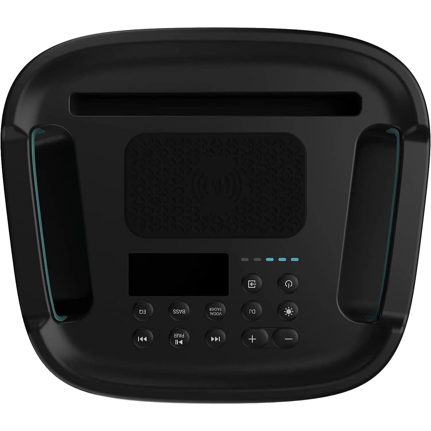 The top control panel of the Hisense 300W Black HP100 Party Rocker | Smart Enterprise is rated IPX4 splash-resistant.