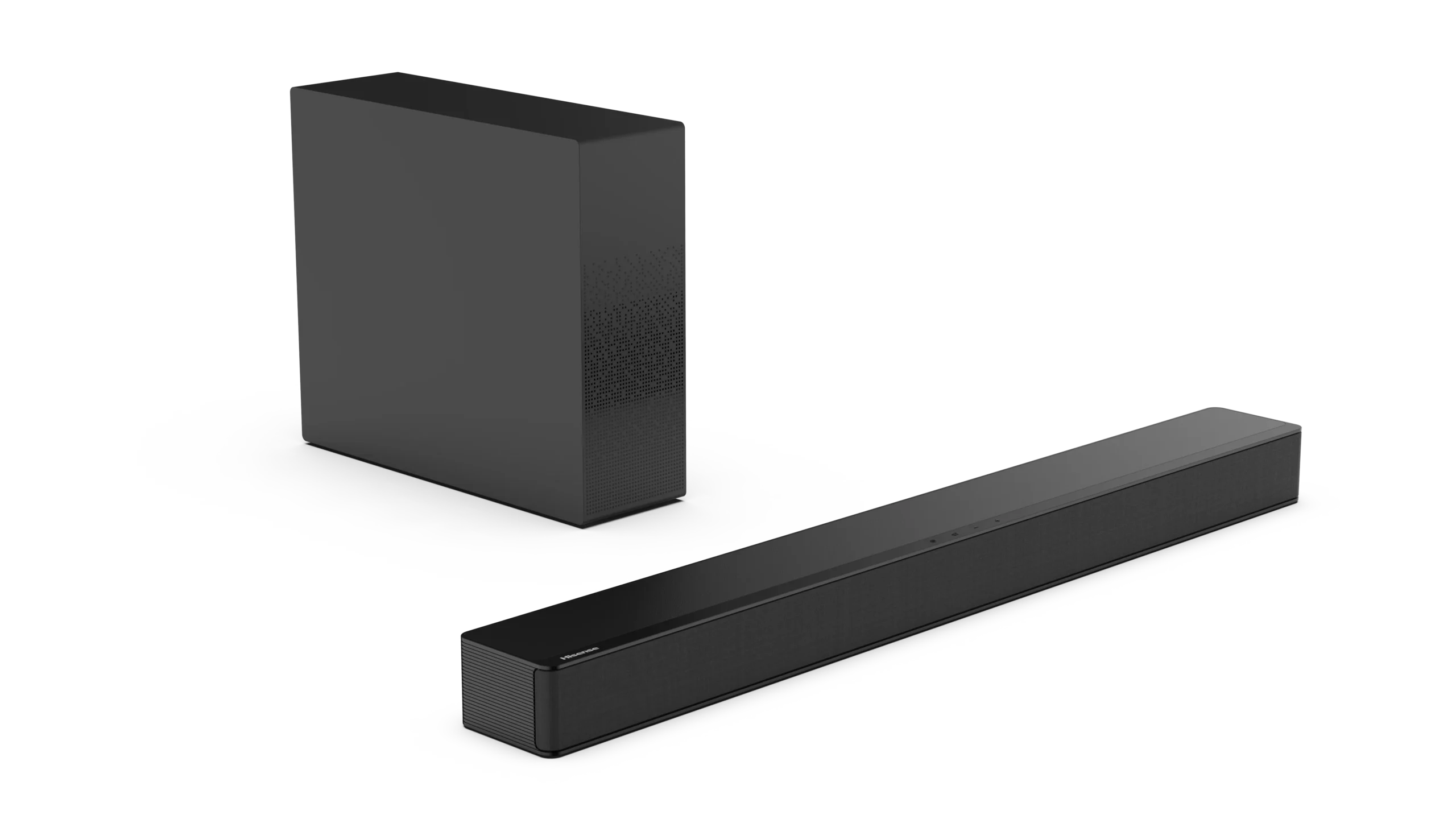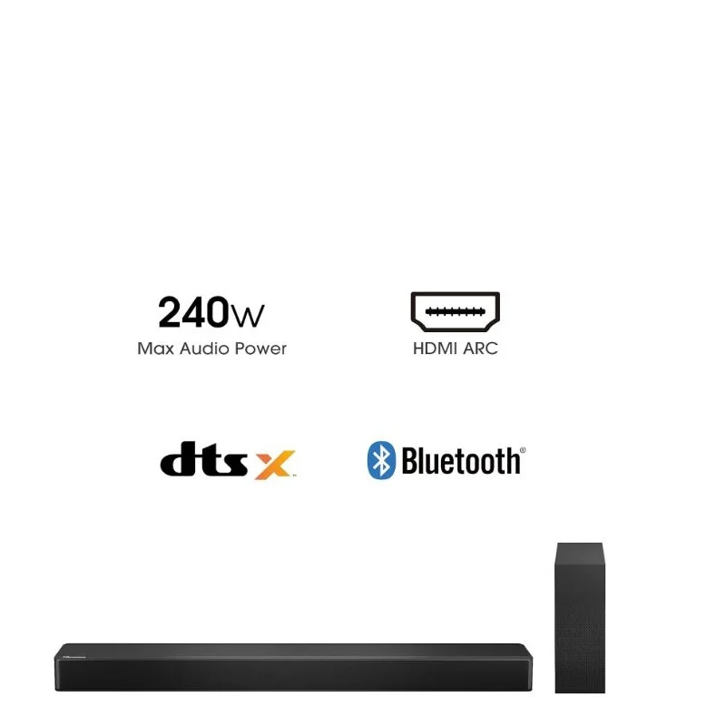 Aesthetic design complements performance. The Hisense HS2100 2.1CH Black Soundbar | Smart Enterprise features: