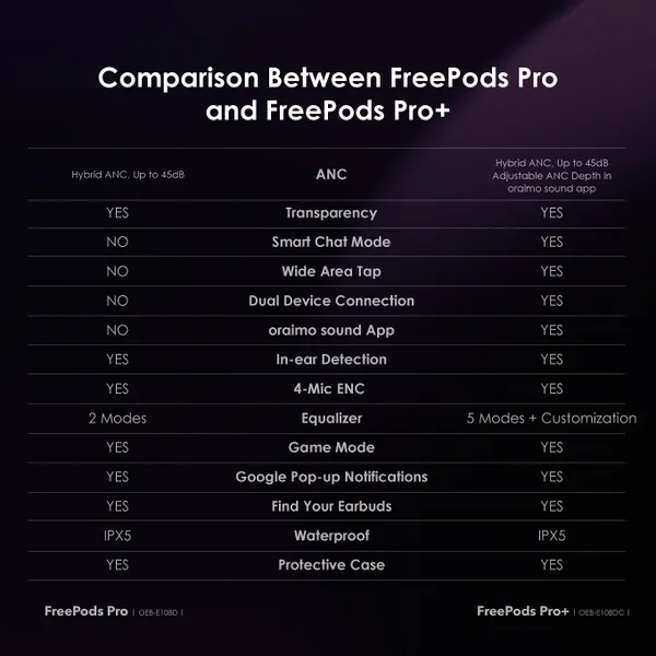 - Model: OEB-E108DC (FreePods Pro+)