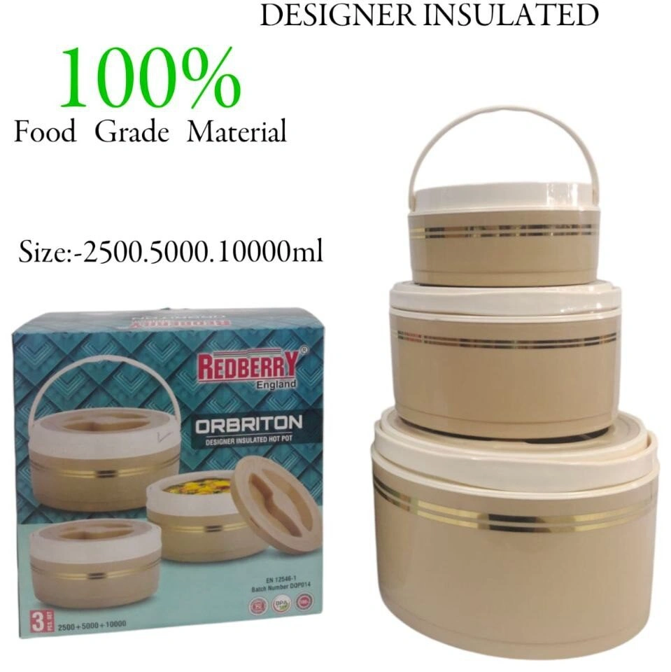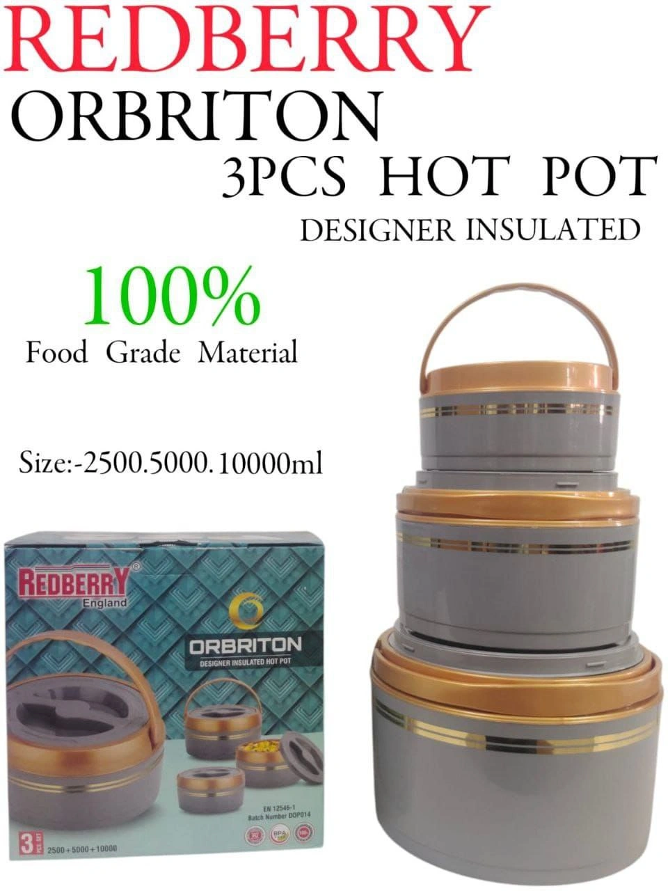 REDBERRY ORBRITON 3 Piece Plastic Designer Hotpot Set. 2500ml 5000ml and 10000ml Thermal Food Warmers for Kenyan Homes