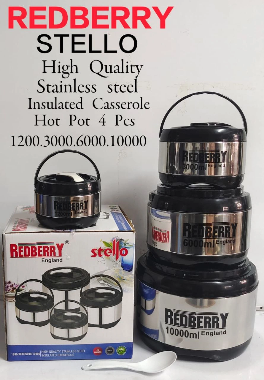 The REDBERRY STELLO 4pcs Stainless Steel Insulated Hotpot Set 1200ml to 10000ml Premium Food Warmers for Home and Events is a high-performance serving and storage solution designed for households, caterers, and event hosts who require reliability, capacity, and refined presentation. Built as part of the trusted REDBERRY STELLO premium range, this hotpot set combines durable stainless steel construction with advanced thermal insulation to keep food hot, fresh, and ready to serve for extended periods.