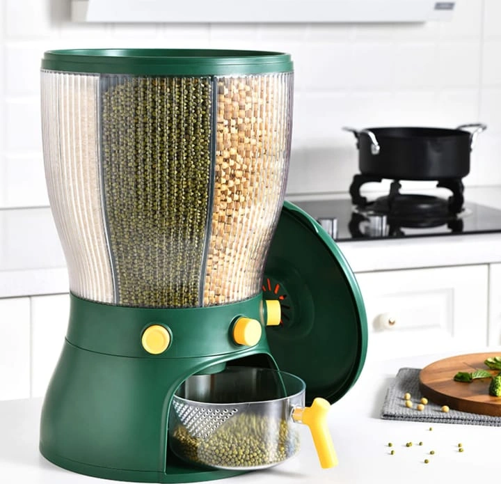 Keep cereals fresh and organized with the Partitioned Rotation Cereal Dispenser. 10kg capacity, 360° rotation, airtight design, and portion control for easy mornings.
